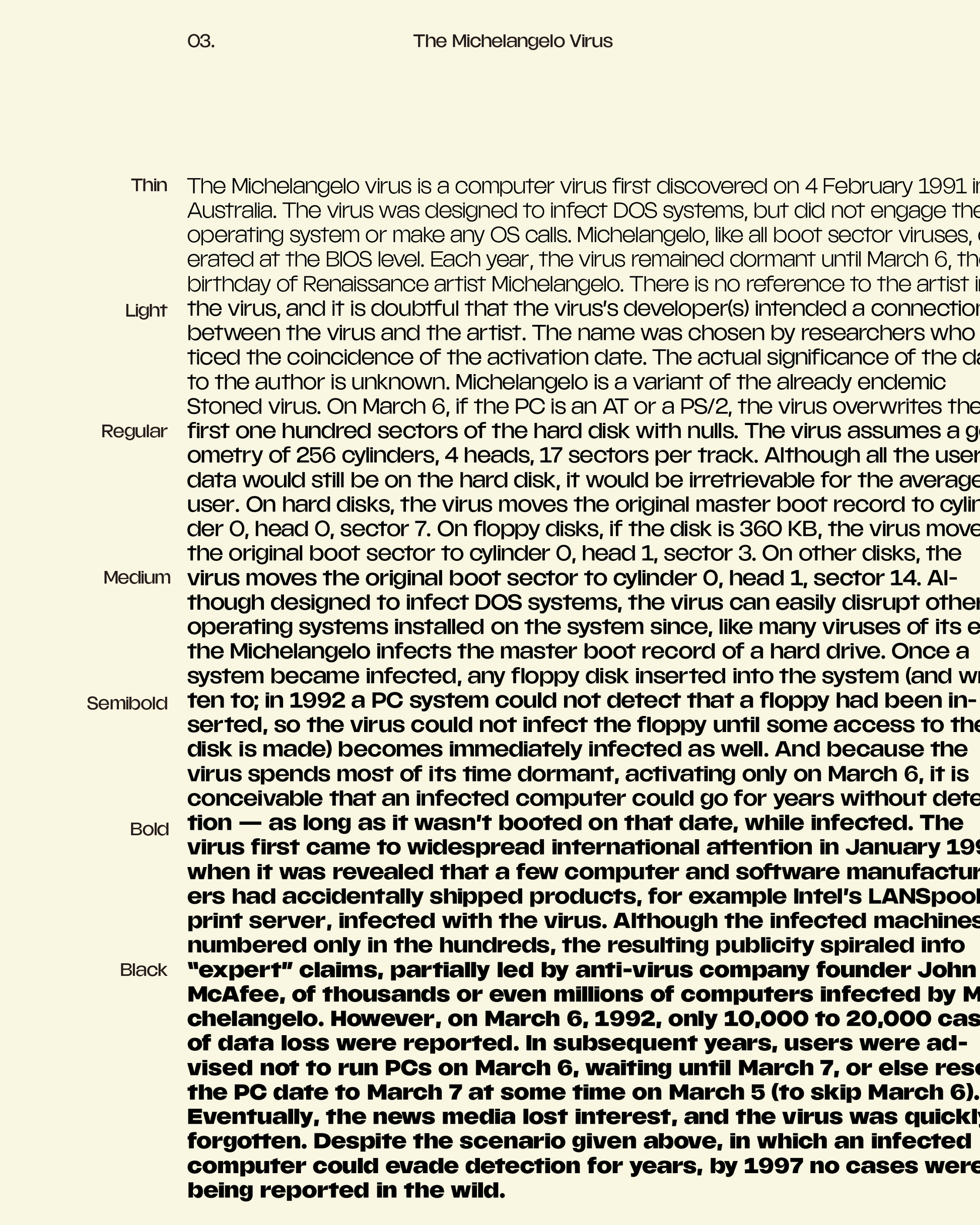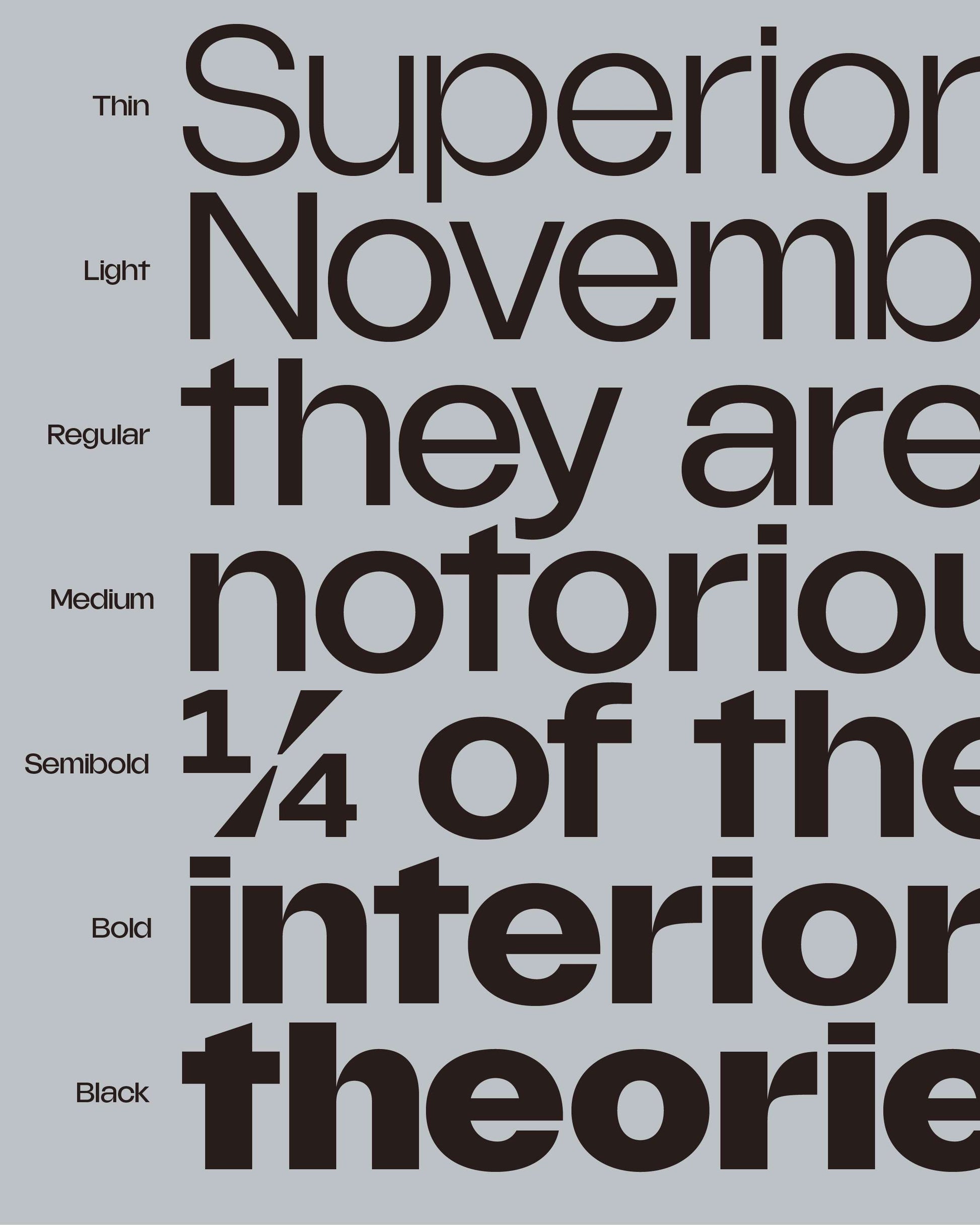 The family is composed of 7 weights spanning from Thin to Black, and offers a wide range of OpenType features, such as case-sensitive punctuation, stylistic alternates, old-style figures, superiors, inferiors and fractions - as well as Full Latin and Basic Cyrillic support.