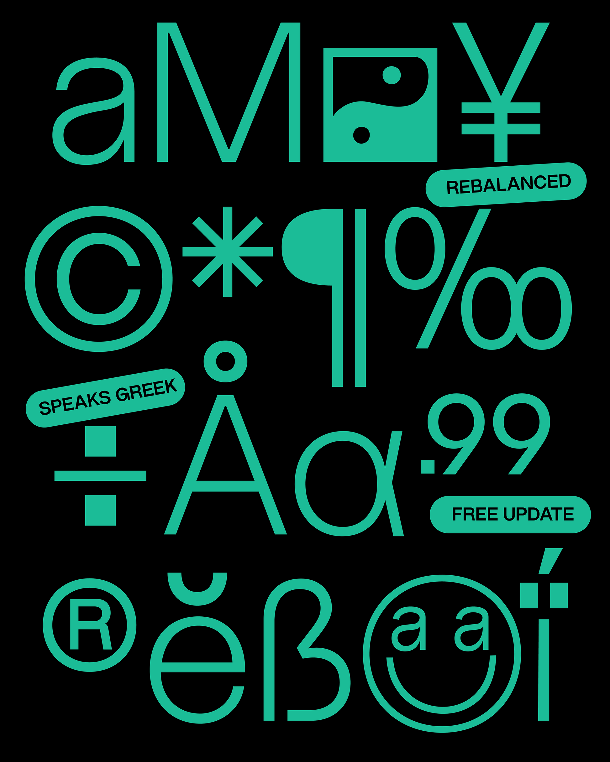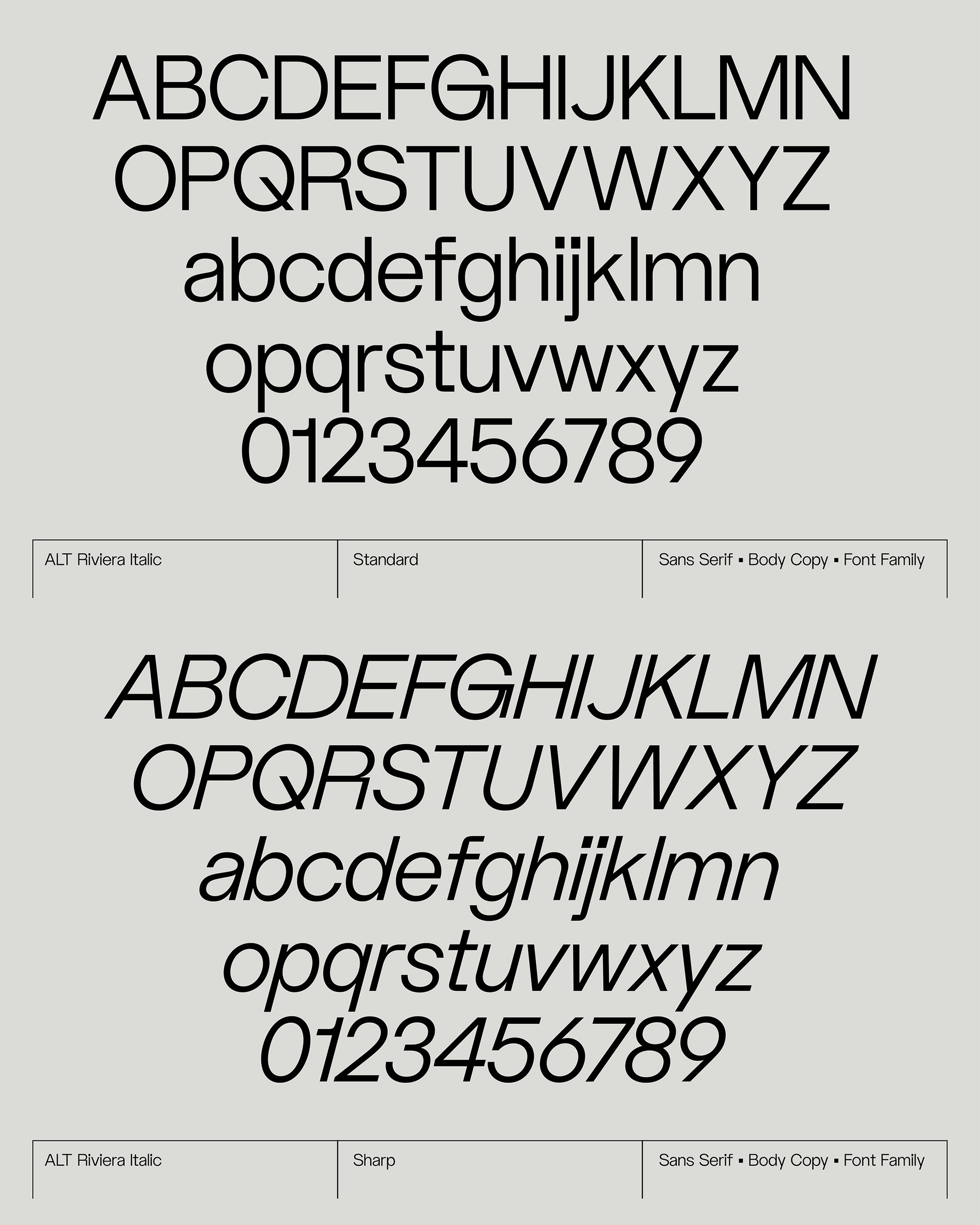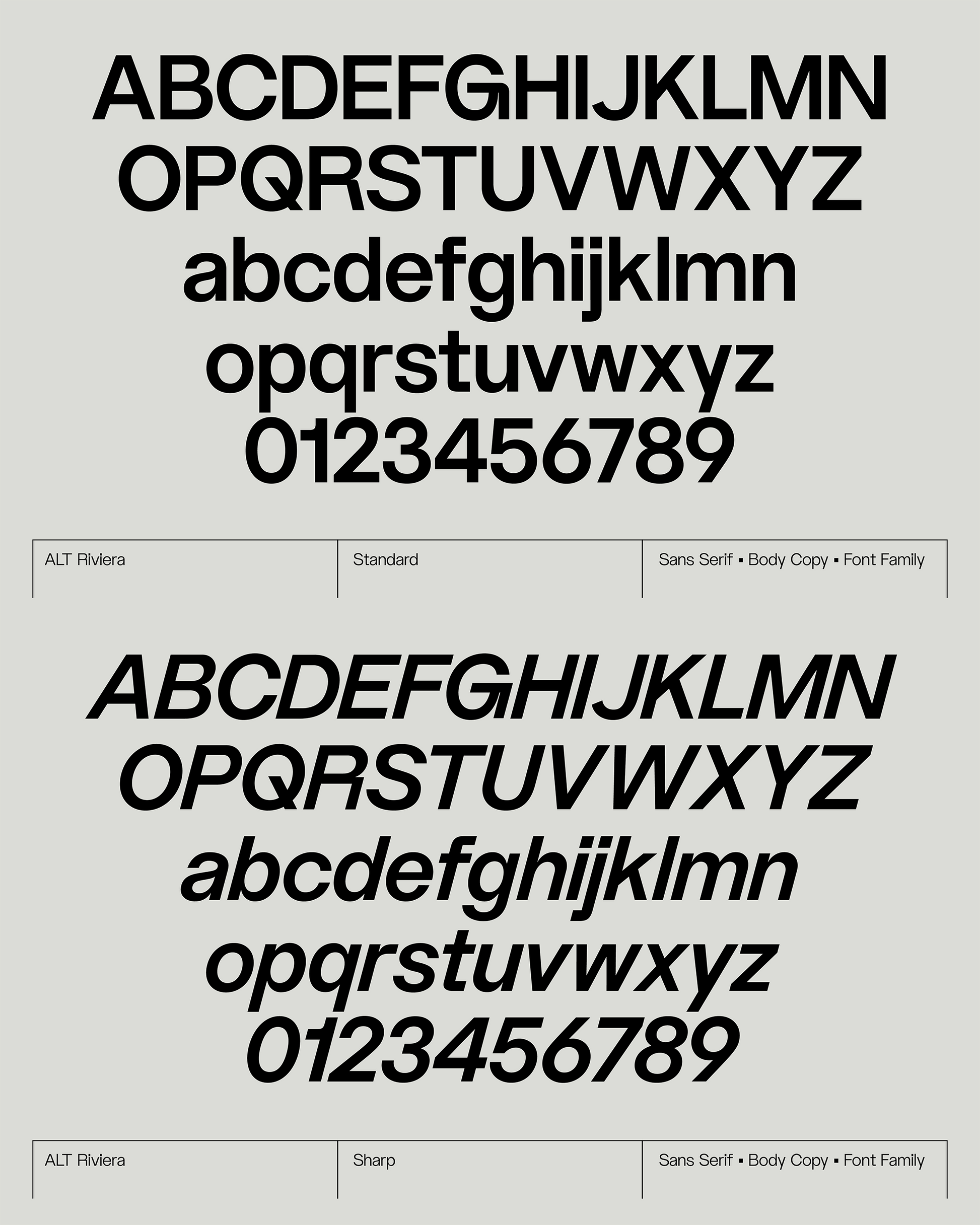 What began with the unconventional choice of developing the symbols first, ALT Riviera is a sturdy typeface integrated with the playful and expressive characteristics woven into its original symbols.